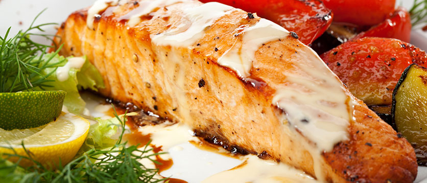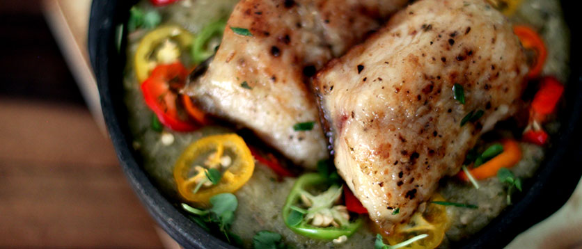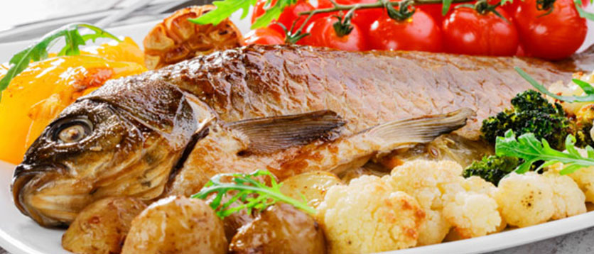 PEIXE ASSADO COM MOLHO DE FRUTAS